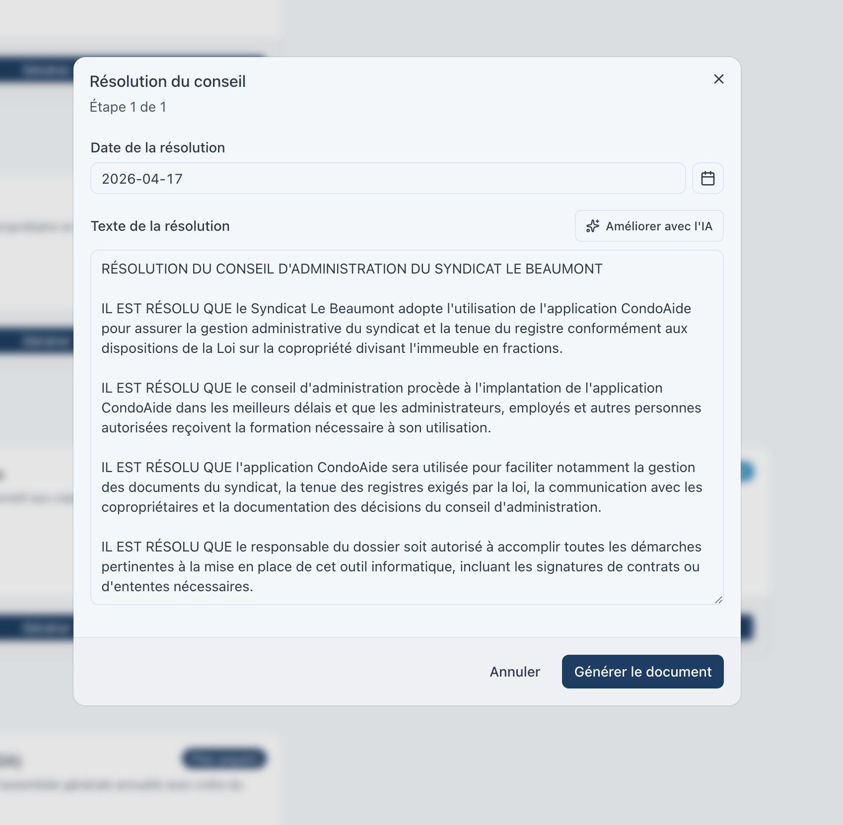 Rédiger une résolution du conseil dans les règles de l'art, ce n'est pas évident. Il faut respecter un certain formalisme — « ATTENDU QUE... IL EST RÉSOLU QUE... » — et plusieurs administrateurs bénévoles n'ont pas nécessairement l'habitude du style juridique.